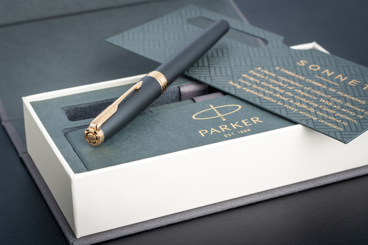Перьевая ручка Parker Sonnet Matte Black GT от официального дилера Parker в Электростале. Вы можете дополнительно заказать гравировку, которая подчеркнет Вашу оригинальность и придаст памятность статусному подарку. Все ручки Паркер поставляются в фирменном футляре.