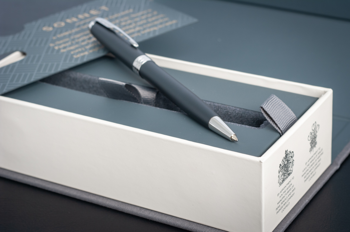 Шариковая ручка Parker Sonnet Matte Black CT от официального дилера Parker в Электростале. Вы можете дополнительно заказать гравировку, которая подчеркнет Вашу оригинальность и придаст памятность статусному подарку. Все ручки Паркер поставляются в фирменном футляре.